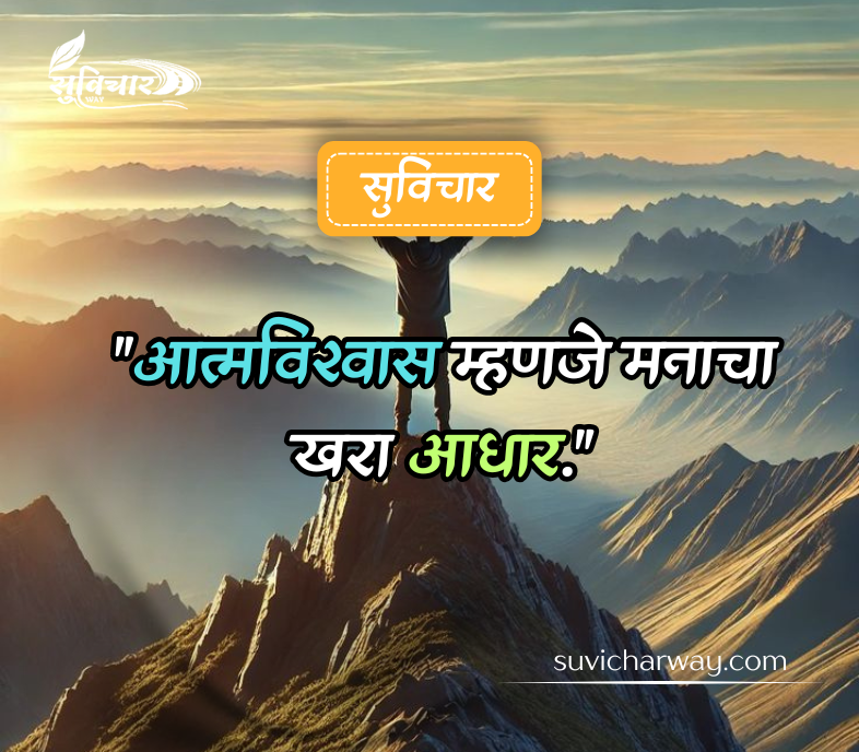 आत्मविश्वास सुविचार मराठी हे केवळ प्रेरणादायी वचनांचा संग्रह नाही, तर प्रत्येक व्यक्तीच्या यशस्वी जीवनाचा गाभा आहे—कारण आत्मविश्वास हा यशाचा खरा मूलमंत्र मानला जातो आणि तोच आपल्याला अशक्य वाटणाऱ्या गोष्टी शक्य करण्याची ताकद देतो. आजच्या धावपळीच्या आणि स्पर्धात्मक युगात, अनेकदा अपयश, संकटं किंवा टीका यामुळे मनात शंका निर्माण होते, आत्मविश्वास डळमळू लागतो—अशा वेळी आत्मविश्वास सुविचार मराठी वाचल्याने मनोबल वाढते, सकारात्मक ऊर्जा मिळते आणि पुन्हा नव्या जोमाने प्रयत्न करण्याची प्रेरणा मिळते. विद्यार्थ्यांपासून ते व्यावसायिकांपर्यंत, प्रत्येक वयोगटातील व्यक्तींना हे सुविचार नवी दिशा, उमेद आणि आत्मविश्वास देतात; म्हणूनच ‘आत्मविश्वास सुविचार मराठी’ या संकल्पनेचा उद्देश म्हणजे—आपल्या मनातील भीती, न्यूनगंड दूर करून, स्वतःवर विश्वास ठेवण्याची कला शिकवणे आणि जीवनात यशस्वी होण्यासाठी मानसिक बळ मिळवून देणे. या लेखात आपण आत्मविश्वास वाढवणारे निवडक, अर्थपूर्ण आणि प्रेरणादायी मराठी सुविचार वाचणार आहोत, जे तुमच्या आयुष्यात सकारात्मक बदल घडवतील आणि प्रत्येक दिवशी नव्या आत्मविश्वासाने जगण्याची प्रेरणा देतील.
