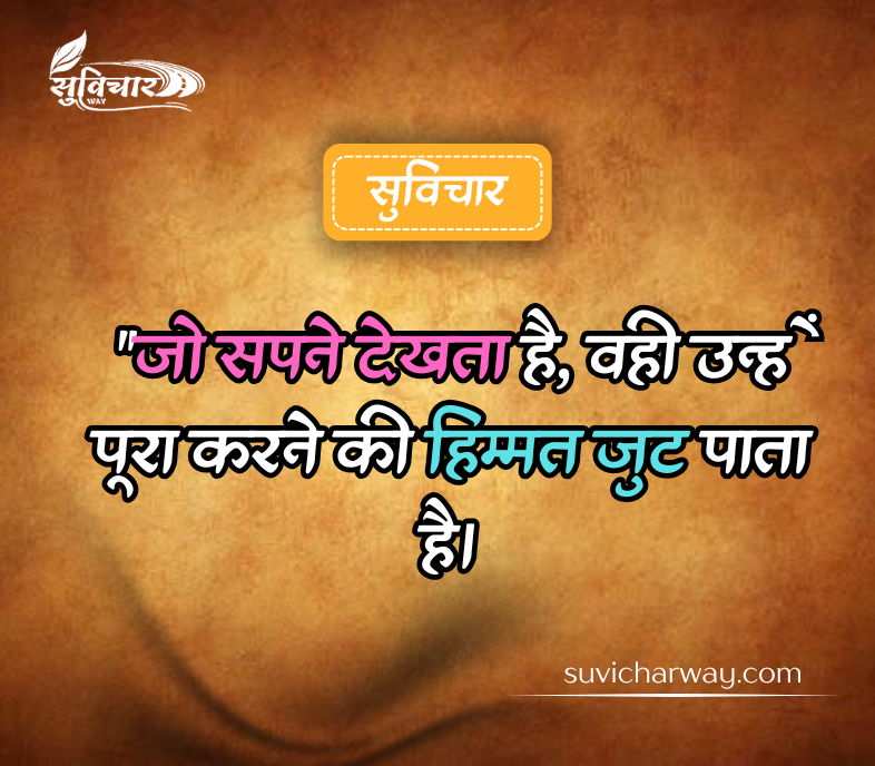 आपका स्वागत है “Suvichar Way” में, जहाँ हम आपके लिए लाए हैं दमदार सुविचार, जो आपके जीवन को सकारात्मकता और प्रेरणा से भर देंगे। हमारी वेबसाइट का उद्देश्य है कि हर पाठक को ऐसे प्रेरक विचार मिलें, जो उसकी सोच को नई दिशा दें और हर दिन को ऊर्जा से भर दें।